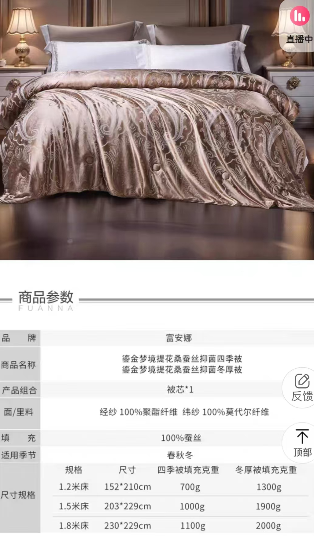 2.1采購范圍:采購滿足(技術(shù)文件)要求的 富安娜 鎏金夢境提花桑蠶絲抑菌四季被(230*229cm) 9SET