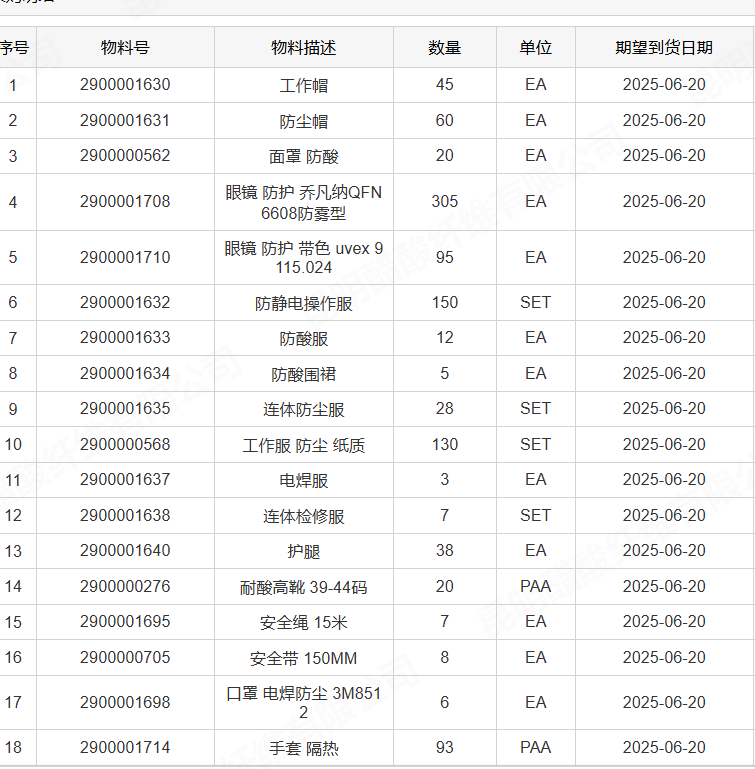 昆明醋酸纖維有限公司購買2025勞保用品項目詢比采購公告