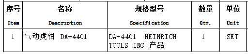 1.1采購(gòu)項(xiàng)目名稱(chēng): 氣動(dòng)虎鉗 DA-4401 1套